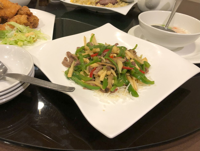 中華の定番チンジャオロースです。彩りも綺麗ですが、味もとってもおいしかったです。好物のフクロタケが入っていて、ラッキーでした。