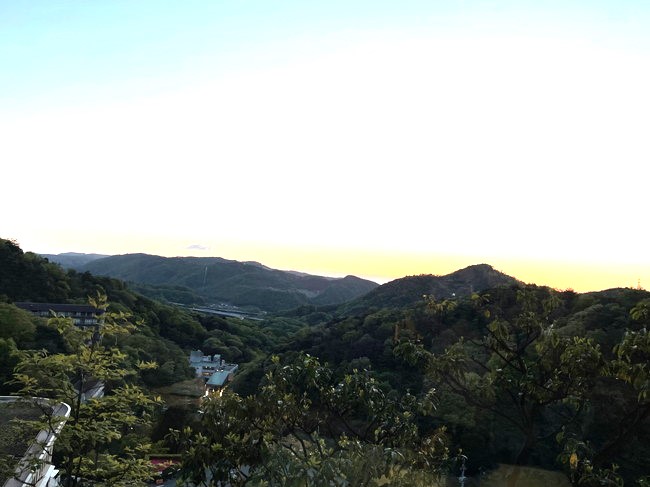 有馬の中でも最も高台に位置する【有馬グランドホテル】は、眺望に優れた旅館としても人気です。有馬三山という湯槽谷山~灰形山~落葉山という六甲山系の山々に囲まれ、有馬温泉街と丹波山地を一望できます。