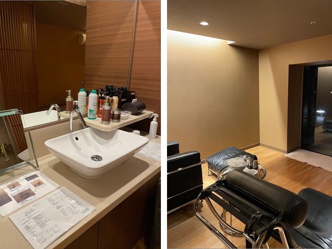 お風呂上がりにゆったりと寛げるチェアやソファの置かれた個室もありました。お水も用意されています。アメニティやバスローブなども用意されているので、手ぶらで行っても大丈夫でした。