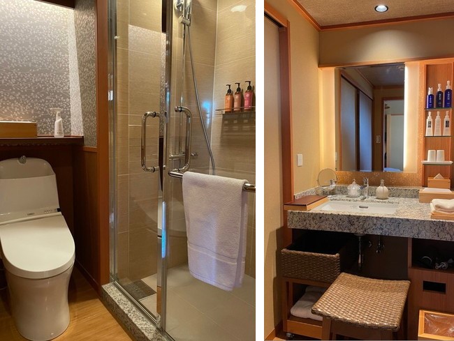 こちらのお部屋はシャワーブース付で、バスタブはありません。セパレートタイプとなっています。温泉にずっと行ったので、シャワーは利用しませんでした。