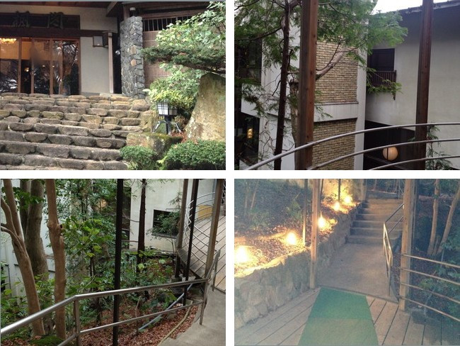 ねぎや陵楓閣は、有馬温泉駅から徒歩5分ですが、賑やかな温泉街からやや離れたところあり、駅近とは思えないほど静かです。”有馬のはなれ”と呼ばれる所以ですね。宿は山の中腹にあり、自生する木々に囲まれています。