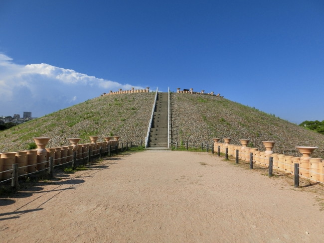 全長194メートル、高さ約19メートルの巨大な古墳は3段構造になっていて、表面には約223万個の葺石が敷き詰められています。とても貴重な遺跡なのですが、なんと入場料も駐車料も無料となっています。