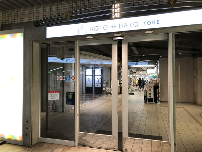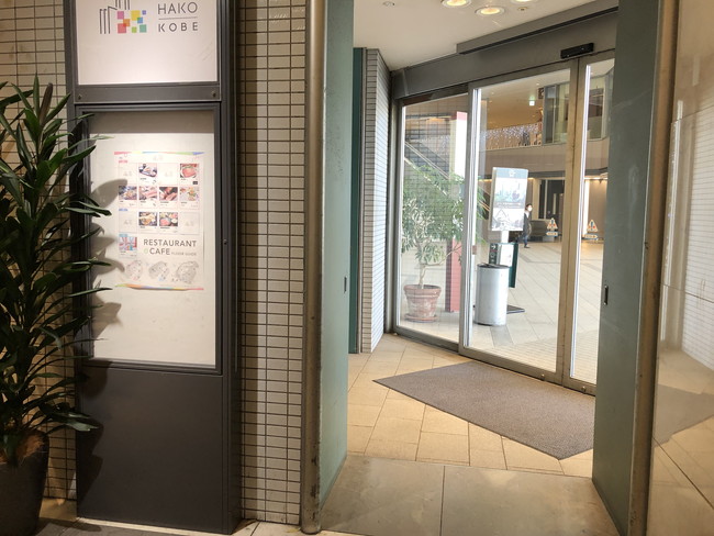通路を通って、【ANAクラウンプラザ神戸】(コトノハコ神戸)の建物に入ります。目の前の自動ドアから入ってください。