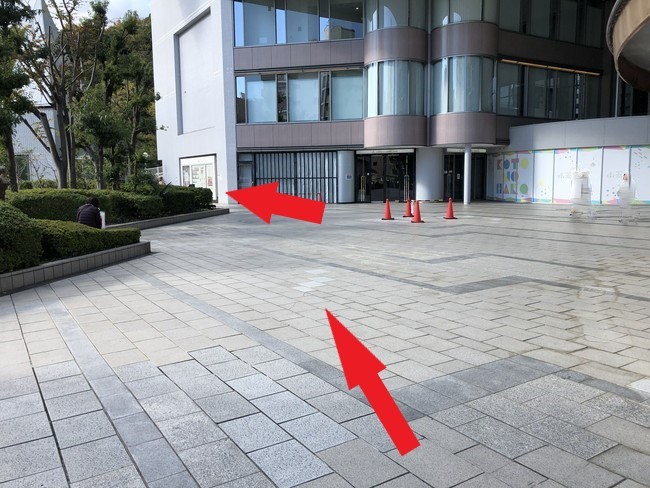 外へ出ると目の前にカフェがあります。こちらをカフェを左手に右方向へ向かいます。