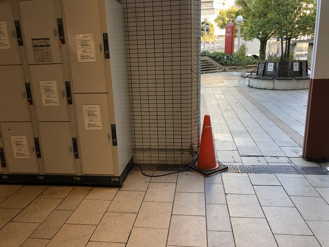 赤い矢印に従って、すぐに駅の外に出ても大丈夫ですし、青色の矢印に従って直進し、突き当たりで駅の外に出ることも可能です。ちなみに突き当りにはコインロッカーがあります。