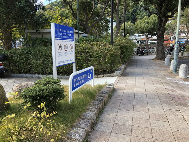 ハーブ園には専用駐輪場がないので、新神戸駅周辺の駐輪場を利用しましょう。駅前の広場には、自転車と原付の駐輪場が設けられており、自転車用スペースの南側に原付用の駐輪場があります。