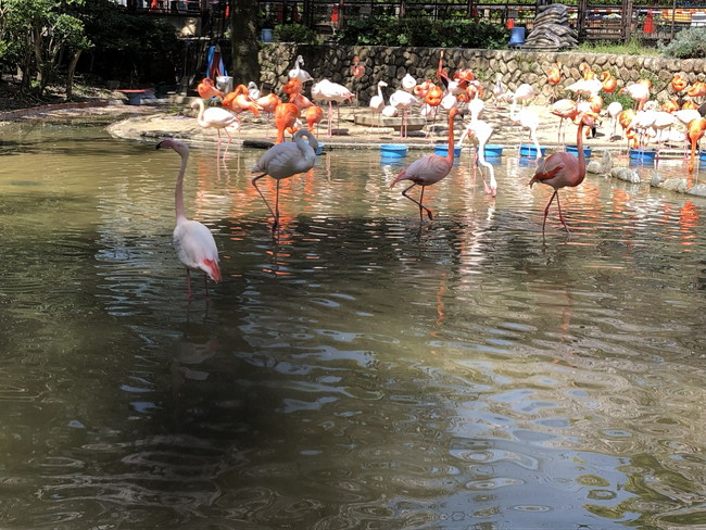 王子動物園は、約130種800点の動物に出会える動物園です。入口入ってすぐに目に入るのはフラミンゴ。めちゃくちゃたくさんいます。飛んで逃げないのかな?
