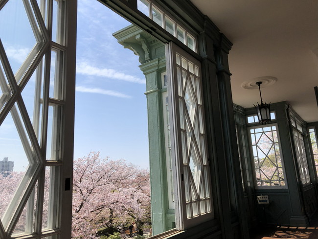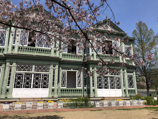 建物は木骨れんが造の2階建て、一部に3階建ての塔屋があります。こちらから眺める桜も素敵でした!!現在は王子動物園の再整備に伴って、旧ハンター邸を元の北野エリアに戻す計画も進んでいるそうで、もうすぐ一般公開が終了してしまいます。ご覧になりたい方は、お急ぎください。