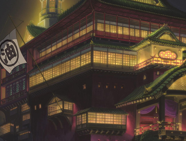 少し前にはなりますが、竹中大工道具館では、スタジオジブリの作品に登場する建築物を通して、日本建築の魅力を紹介するという特別展もありました。 この展示では、『となりのトトロ』の草壁家の実物大模型や、『千と千尋の神隠し』の油屋、『もののけ姫』のタタラ場など、ジブリ作品の背景美術や設定資料が展示され、アニメーションに描かれた建物が、実際の日本建築の文化や技術と深く結びついていることが示されています(画像引用:スタジオジブリ作品の場面写真)。